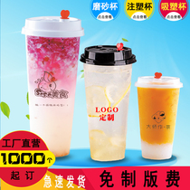 Milk tea cup Injection cup Disposable 90 caliber plastic cup 500ml Frosted milk tea beverage cup 700 customized with lid