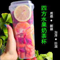 Disposable thickened injection molded square cup 1000ml Fruit tea beverage milk tea cup High transparent set plastic cup