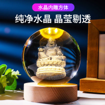 Creative luminous crystal ball carved inside gift craft gift Buddha statue night light housewarming home decoration