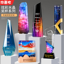 Colored crystal trophy, solid wood color printed medal, high-end creative company annual meeting competition award cup
