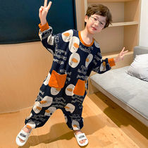 Children conjoined pajamas long sleeves pure cotton boy Spring and autumn baby mother-and-son anti-kick by little boy CUHK child's home clothes