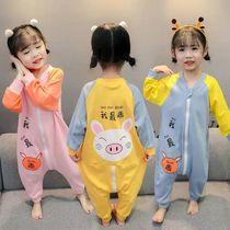 Children conjoined pyjamas girls anti-kick Harvest sleeping bag cute Modale Summer thin women's baby air conditioning suit