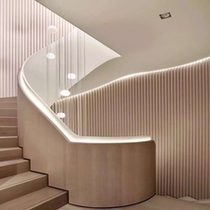 Creation step stairs modern simple light luxury curved coil guardrail wood veneer carbon steel plate Wall guardrail