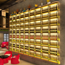 Bar Restaurant Iron Art Partition Wine Shelf Decoration Bar Wall Wall-mounted Solid Wood Luminous Red Wine Beer Cabinet Placed show Show