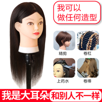 Hairdressing head model full real hair barber shop apprentice practice can be permed and blown cut model doll dummy head model