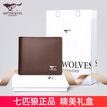 Seven Wolves Men's Wallet Genuine Leather Short Money Clip Money Clip 2021 New Exploits Leather Bag Men's Bull Leather Wallet Daddy