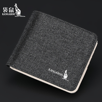 Kangaroo men's wallet 2021 new short Canvas Money Clip Zipper Fashion Minimalist Student Youth Leather Clip Tide Card