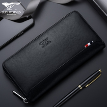 Seven wolves long purse for men's genuine leather Jane approximately zipped wallet handbags for business leather clips Large-capacity upscale