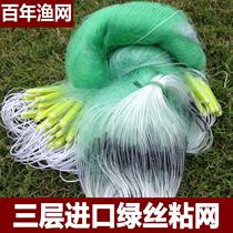 High-net imported green silk three-layer fishing net hanging net, wire mesh fishing net aggravated sunken net silver carp 100 meters stained net
