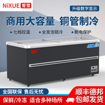 Freezer Commercial large-capacity fresh-keeping and freezing display cabinet Supermarket hotel double-door glass refrigeration and refrigeration horizontal island cabinet
