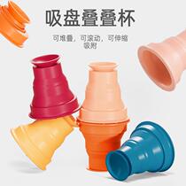 Baby Soft Glue Colorful Suction Cup Stacking Cup Foldable Cup Table Dining Portable Bathing Partner Toy