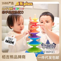 Baiji Bear's new product Rainbow Circle Rotating Tower Jenga Baby 0-1 year old Color Cognition Set Ring Early Education Toy