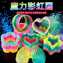 Large magic luminous rainbow circle colorful stacked circle plastic spring ring pull ring children's nostalgic toy 9*8 7