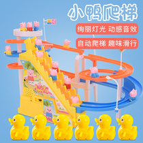 Little duck up the stairs toy little yellow duck climbing stairs track duckling pig ladder Net Red pet duck