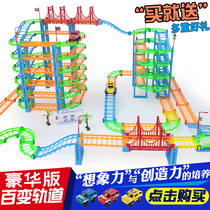 Children's car toys, men and women children assemble luminous car with lights car assembly train rail car special accessories