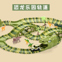 Electric car track dinosaur park diy assembly roller coaster children 6 boys toy creative free splicing