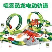 Children's electric Sprayable dinosaur track assembly toy boy puzzle color variable soft rail car