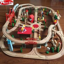 High quality beech wood children train track toy set wooden rail car baby Assembly compatible IKEA