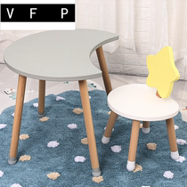 Nordic minimalist children solid wood table and chair set kindergarten writing moon table chair ins baby learning table