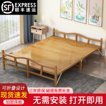 Bamboo bed folding sheets Double simple household lunch break nap cool bed rental room Solid wood hard board bed Bamboo small bed