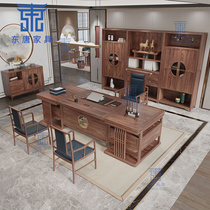 New Chinese style office desk Solid wood boss table Simple modern president table Large desk table and chair combination Ebony wood furniture