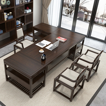 New Chinese black walnut wood color solid wood desk boss table big class desk President table and chair combination office furniture