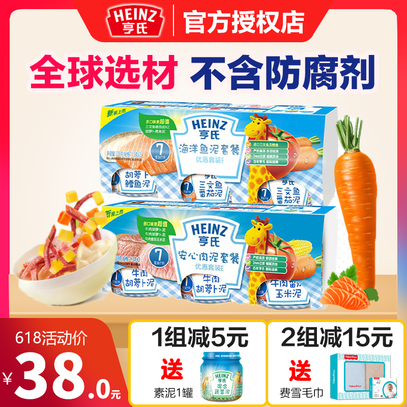 Heinz meal puree*6 cans of fish puree Meat puree Baby nutrition Baby baby supplement Salmon beef tomato
