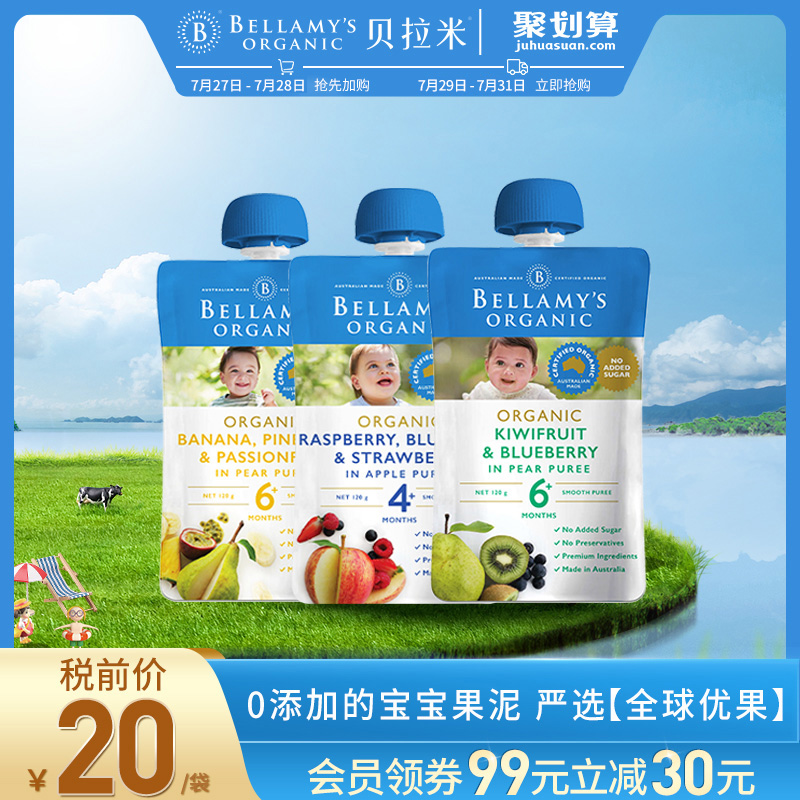 Bellamy's Organic Puree 3 Flavors 3 Bags Baby Puree Infant Mixed Puree Raspberry Blueberry Puree