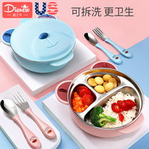 Baby dinner plate stainless steel divided suction plate eating cartoon water insulation bowl supplementary food baby children tableware set