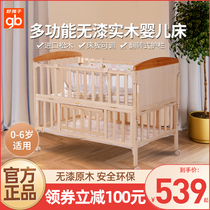 gb good baby crib solid wood unpainted baby bed multifunctional BB children's bed pine cradle bed mosquito net