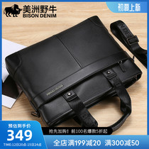 Americas Bison Bull Briefcase Male Handbag Genuine Leather Male Baotou Layer Cow Leather Casual Single Shoulder Inclined Satchel Business Bag