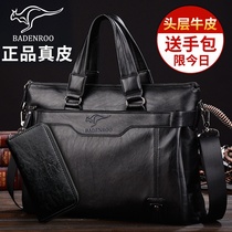 Kangaroo Men Handbag Business Headlining Cow Leather Computer File Briefcase Single Shoulder Inclined Satchel Carrying Bag Man