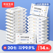 Wet toilet paper 10 pump 20 packs of home-friendly men and women can flush into the toilet small bag portable butt wipe wet paper towel