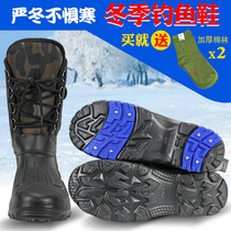 Special boots for fishing Autumn and winter warm shoes men's non-slip waterproof ice fishing special high tube rain shoes village fishing products