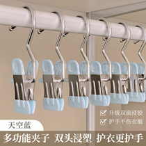 Stainless steel clip with hook, hat storage clip, trouser clip, leather cloth clip, windproof quilt, socks drying clothespin