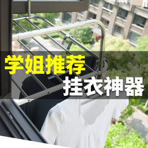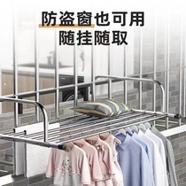 Stainless steel window balcony shoe rack anti-theft window sill artifact hanging cool clothes rack folding telescopic quilt drying rack