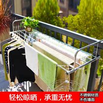 304 stainless steel window high-rise guardrail drying rack non-perforated fixed clothes drying Rod balcony external hanging clothes drying artifact