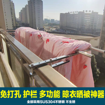 Stainless steel non-perforated shoe rack multifunctional balcony window drying quilt single artifact guardrail anti-theft net drying rack