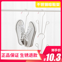 Shoe rack stainless steel household shoe rack multi-function balcony window adhesive hook drying shoe rack windproof shoe hanger
