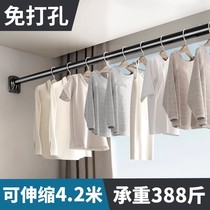 Clothes rack rod wall balcony fixed one stainless steel clothes hanger without drilling installation telescopic support rod 1651