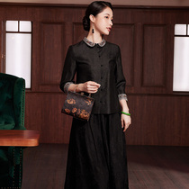 Chinese style women's autumn and winter long sleeves improved cheongsam jacket Republic of China style Hanfu suit tea suit Tang suit women's two-piece set