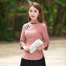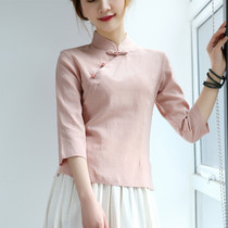 Ya cheongsam top Tang suit Chinese style women's vintage cotton linen literary original tea clothing fashion Chinese women's clothing