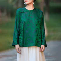 Zhu's original (Jantang blossom) hand-painted silk satin fragrant cloud yarn Chinese top female Autumn New buckle retro