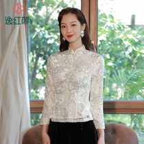 Yihong Yan Mianxian 2021 autumn new long sleeve exquisite velvet top with satin Chinese top