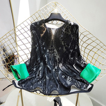 Golden velvet Chinese coat women's spring new velvet rotten flower collar long sleeve improved Tang suit women's shirt tide