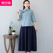 Chinese style Zen Women's Hanfu Summer Clothing Chinese Tang Dress Buckle Top Cotton Tea Clothing Zen Clothing