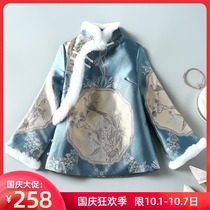 Tang Chinese style retro women's autumn and winter Chinese embroidery Hanfu modified version cotton cheongsam top Zen tea suit