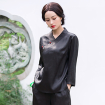 Chinese classic Chinese jacket loose improved fashion Chinese style high-end black silk fragrant cloud yarn Tang suit female summer