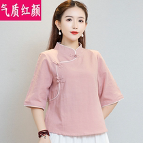Tang suit Chinese style Hanfu women's modern modified version of Xianqi summer ethnic Chinese Zen tea costume shirt
