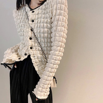 Romantic girl sense three-dimensional bubble square slim cardigan top female 2021 autumn new color color temperament Joker
